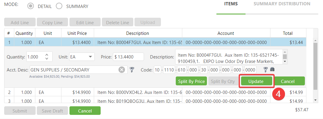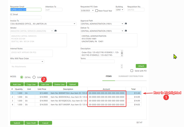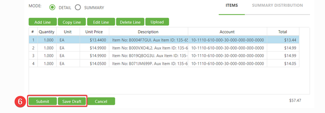 Submit to submit the Requisition for Approval or Save Draft to return to the requisition for additional edits