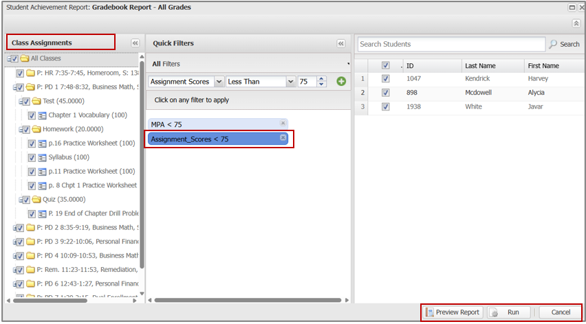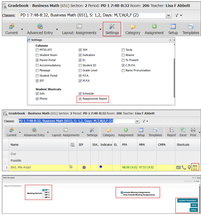 - Choose the Marking Period(s) and then click the Update Parameters button.