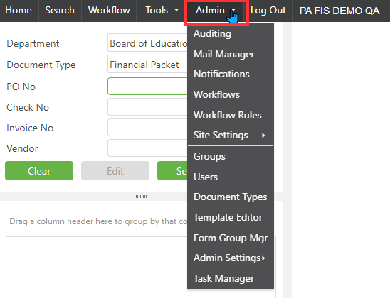 Click on Admin.