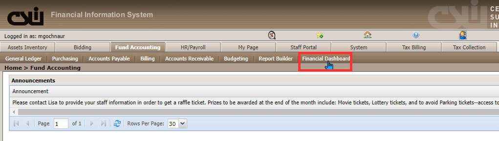 Click on Financial Dashboard, which takes you to the SCView login page.
