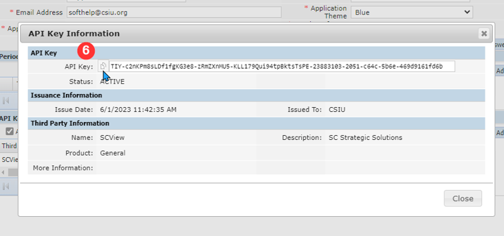 7. Paste the API key to this ticket/email and send it back to CSIU Support. If you don’t have a ticket or email, please create a ticket or email it to
