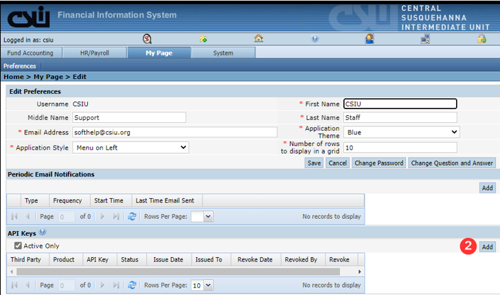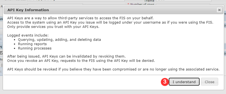 To set up the Financial Dashboard, we need to establish a connection between FIS and the Financial Dashboard. In order to do this, we have set up an API Key token. To obtain the API Key Token, you will need to do the following. Note that this is a one time set up that needs to be completed before your information shows up in the Financial Dashboard, but will not need to be done again for your agency.
