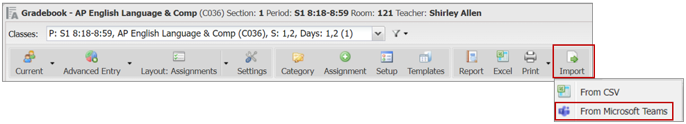Teacher Connect Gradebook Import > From Microsoft Teams