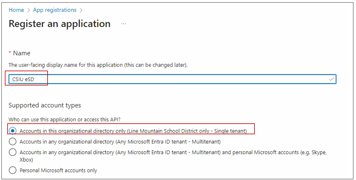 To attain the required tokens from Microsoft Team, you will need to register the CSIU eSD application within the Azure portal.